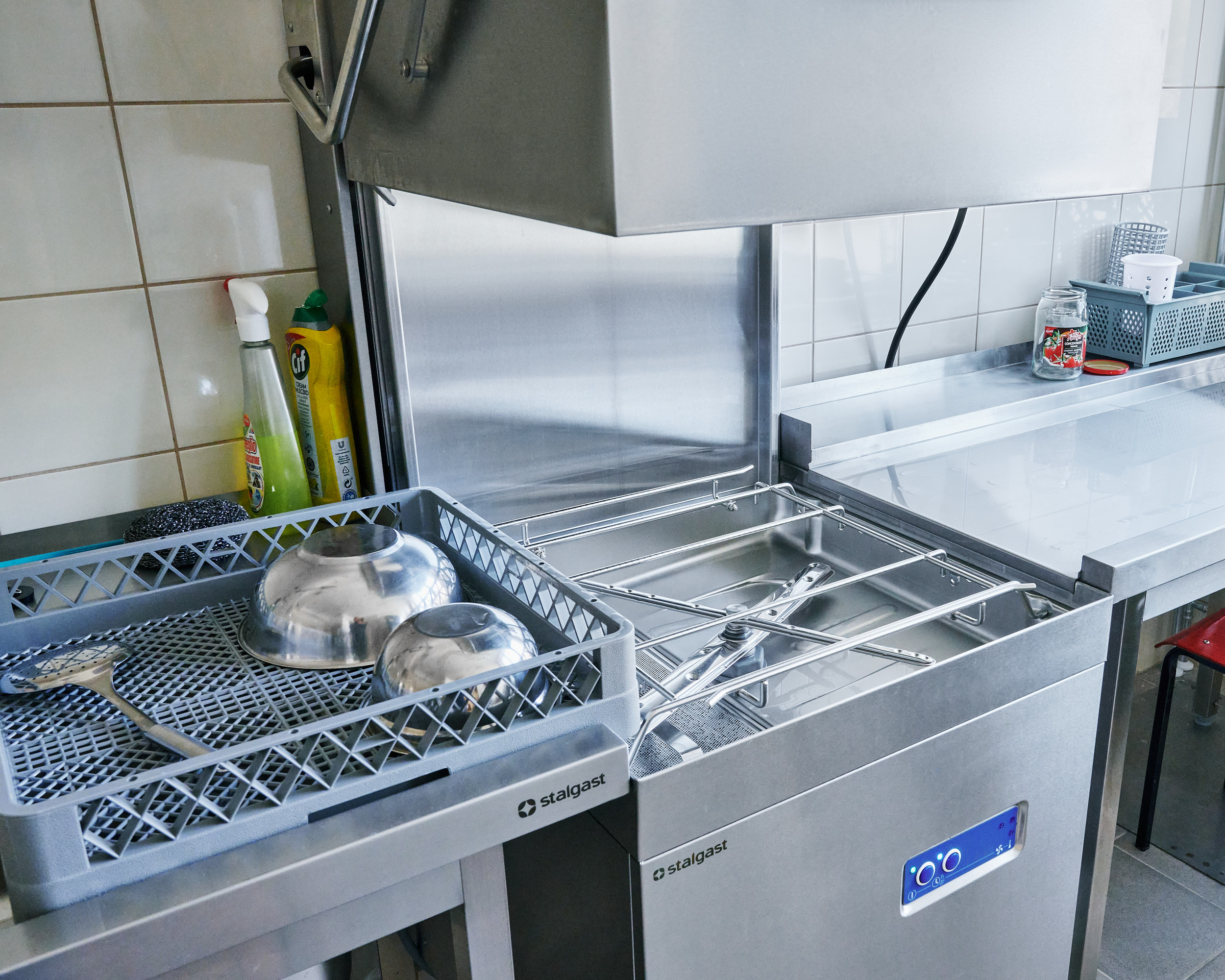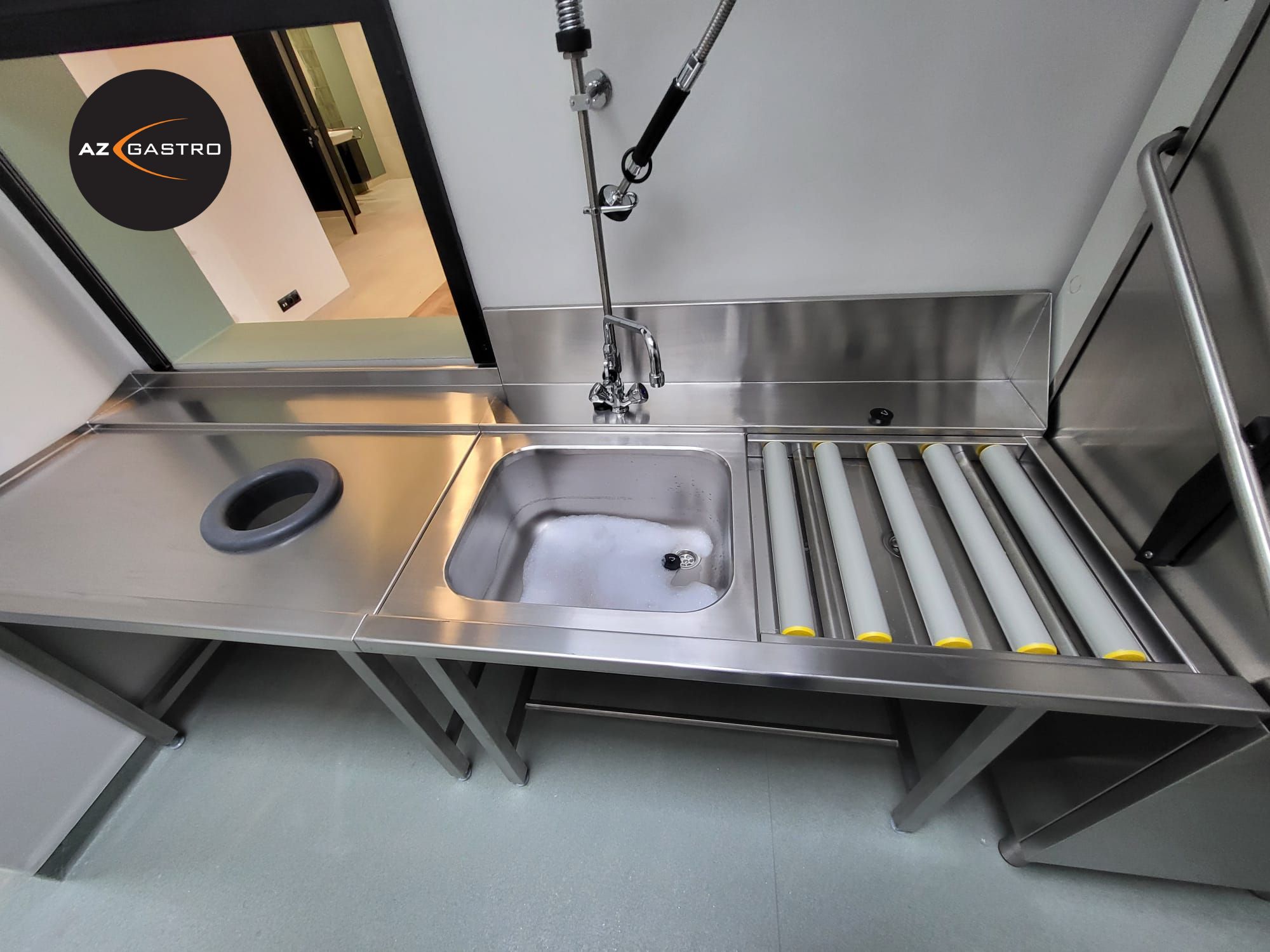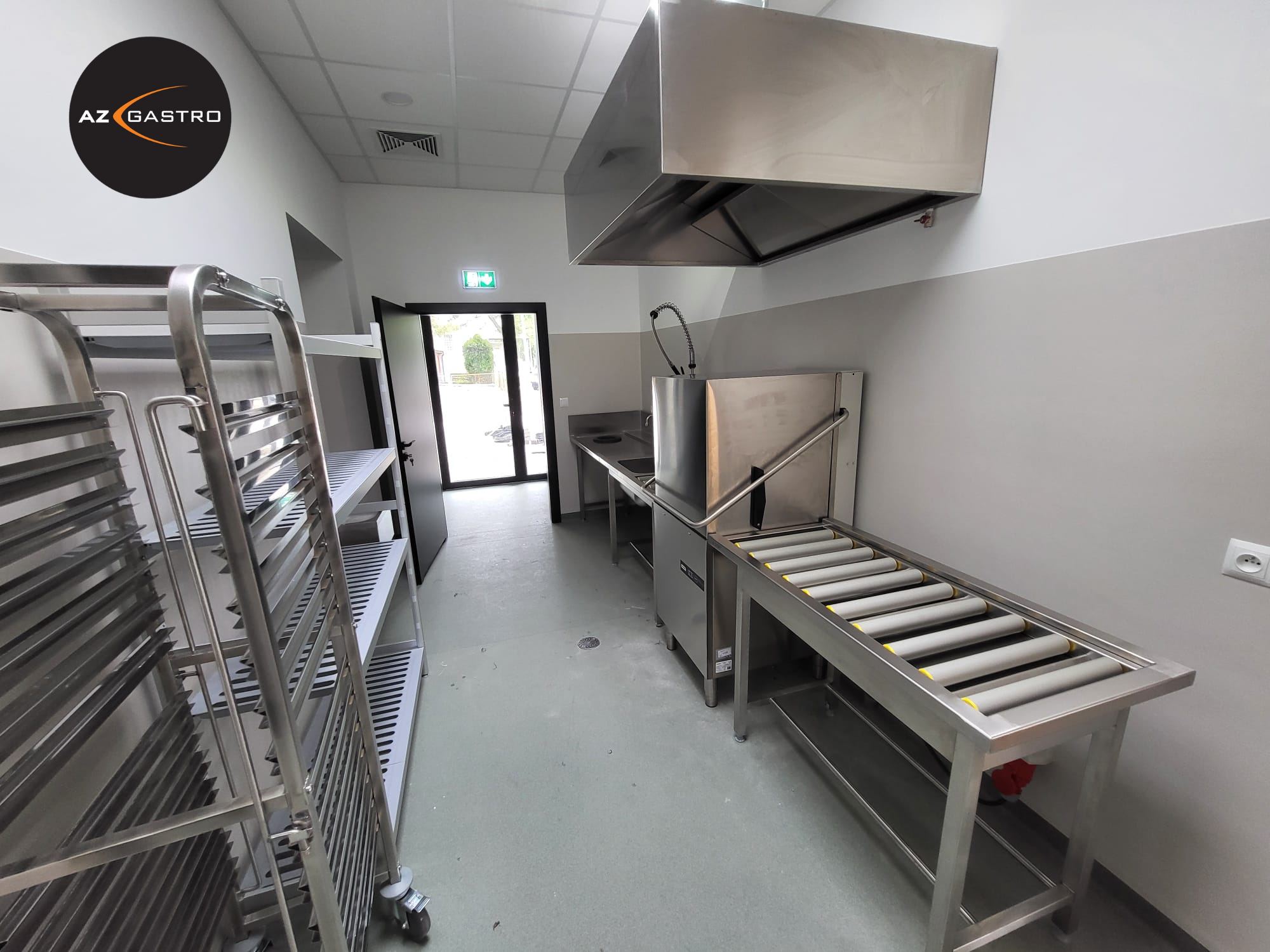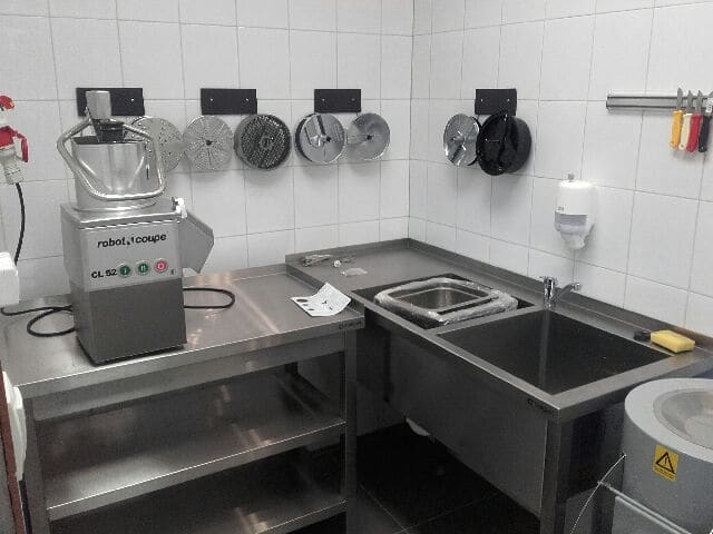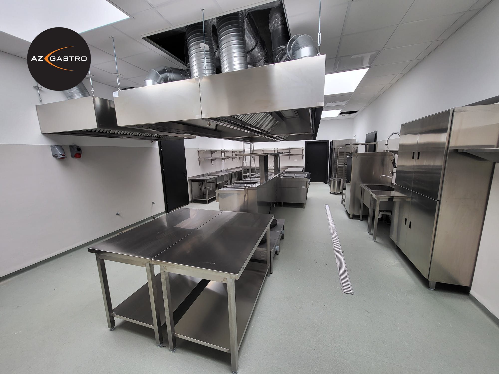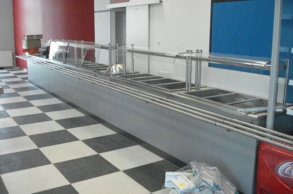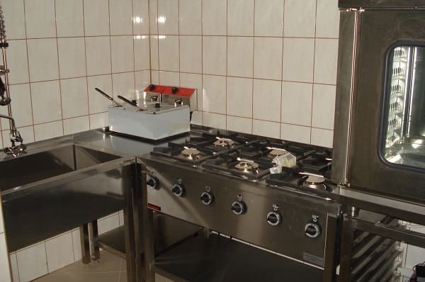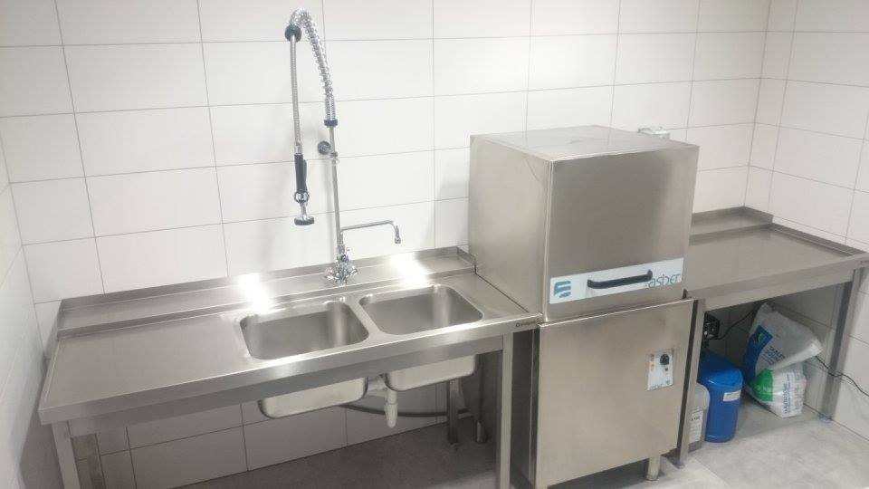 Meble ze stali nierdzewnej, urządzenia grzewcze, urządzenia chłodnicze, zmywalnia, urządzenia barowe.